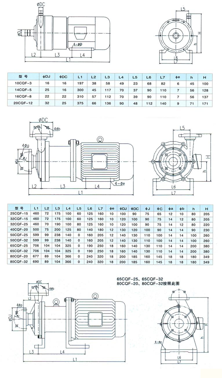 | 注:表中20CQF-12---65CQF-32都可配防爆電機(jī) | |||||||