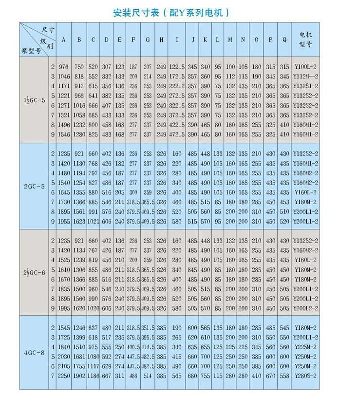 G型鍋爐給水泵,供輸送清水及物理化學(xué)性質(zhì)類似于水的液體之用。本型水泵揚(yáng)程在46至576米時(shí),流量為6至55米/小時(shí),水泵配用Y型電動(dòng)機(jī)。