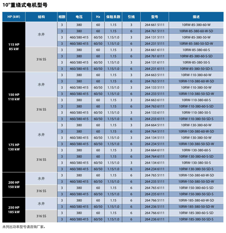暫無10"重繞式潛水電機(jī)腐蝕性能表!