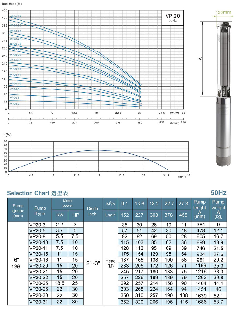 暫無VP6"-20不銹鋼潛水泵腐蝕性能表!