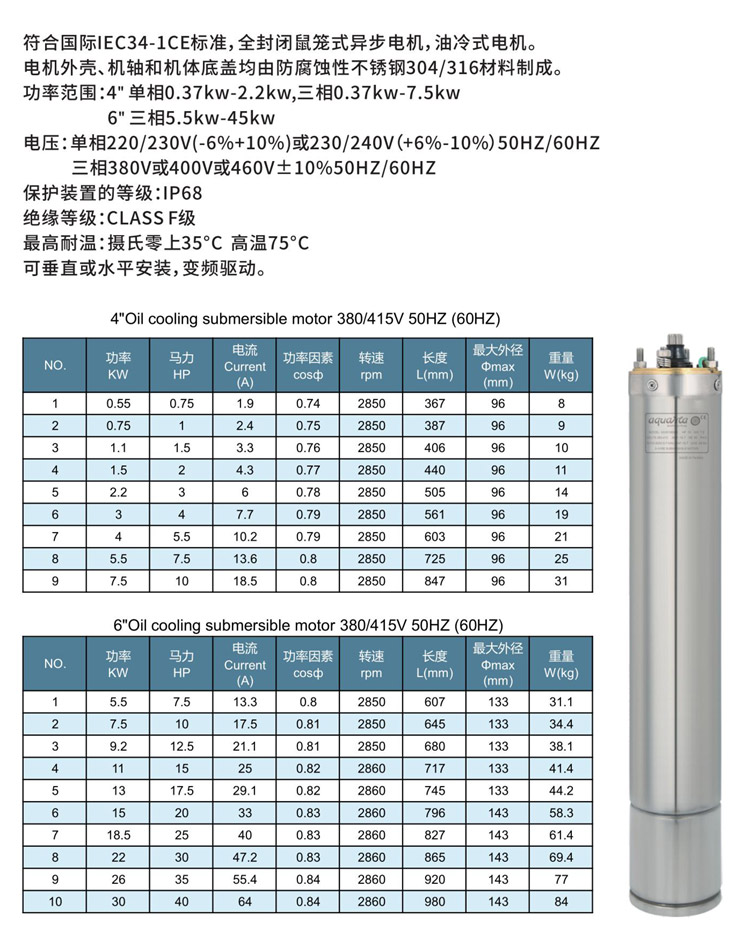 暫無4"6"充油式潛水電機(jī)腐蝕性能表!