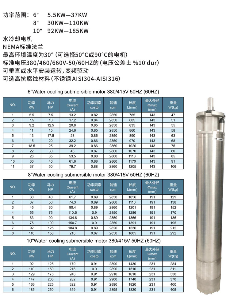 暫無6"8"10"充水重繞式潛水電機腐蝕性能表!